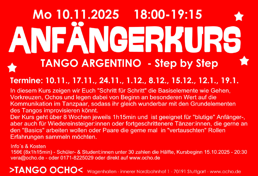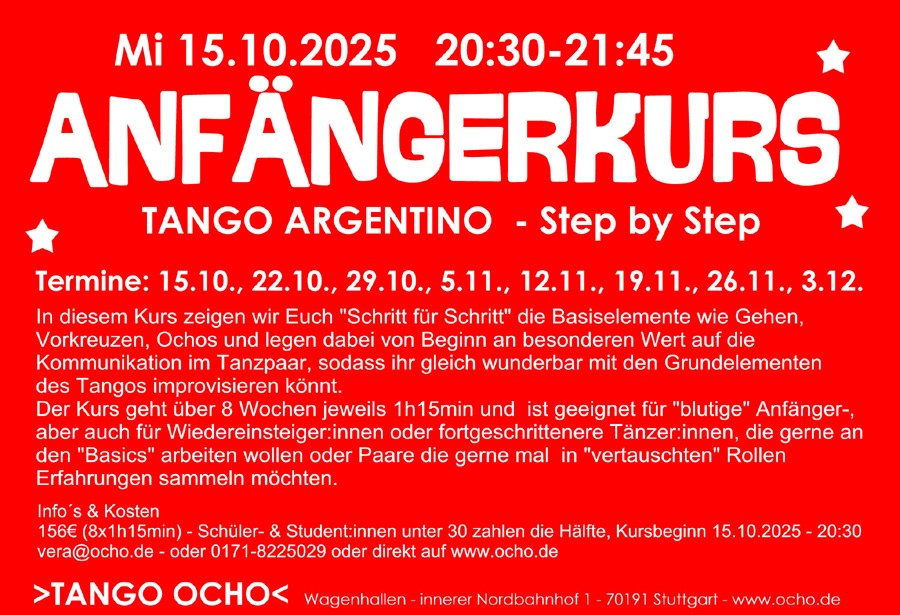 ![]() Fortg Herr (5 Jahre Tango) sucht Tanzpartnerin für den Workshop |
